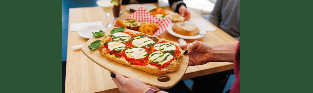 | Classic marinara topped with fresh mozzarella and drizzled with pesto | |